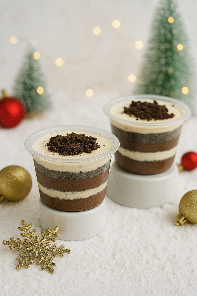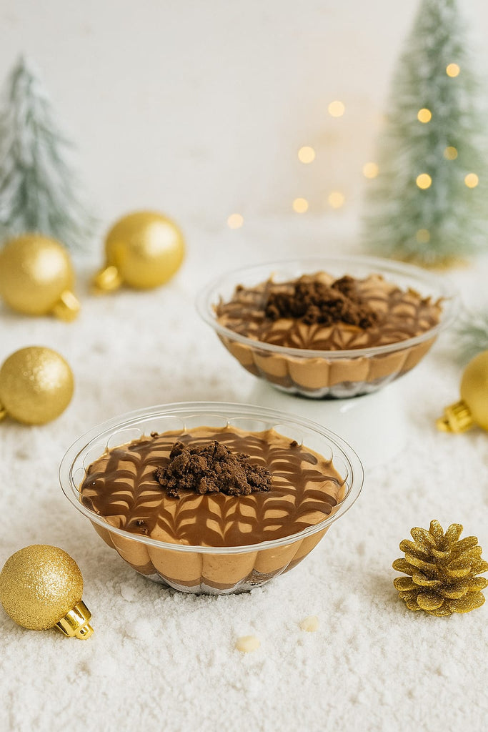Base de brownie sin harina, con una crema de baileys.Postre individual de 2 porciones