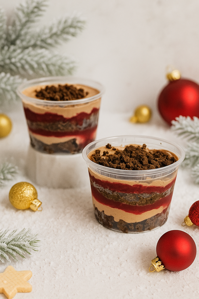 Queque estilo Trifle, sus capas estan compuestas de queque de chocolate...